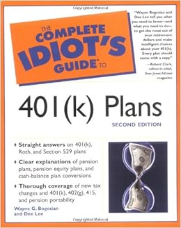Complete idiot's guide to 401 (k) plans (eBook, 2002 ... Get this from a library! Complete idiot's guide to 401 (k) plans. [Wayne G Bogosian; Dee Lee] -- Annotation The second edition of this popular title is completely updated for 2001 tax laws, including the President's Tax Bill.-- Currently, 76 million Baby Boomers are looking ahead to their ... The Complete Idiot's Guide to 401(k) Plans (2nd Edition ... The Complete Idiot's Guide to 401(k) Plans (2nd Edition) [Dee Lee CFP, Wayne G Bogosian, Wayne G. Bogosian, Dee Lee] on Amazon.com. *FREE* shipping on qualifying offers. Provides advice on investing for retirement in a 401(k), including how to maximize earning, minimize risk Amazon.com: Customer reviews: The Complete Idiot's Guide ... Find helpful customer reviews and review ratings for The Complete Idiot's Guide to 401(k) Plans (2nd Edition) at Amazon.com. Read honest and unbiased product reviews from our users.